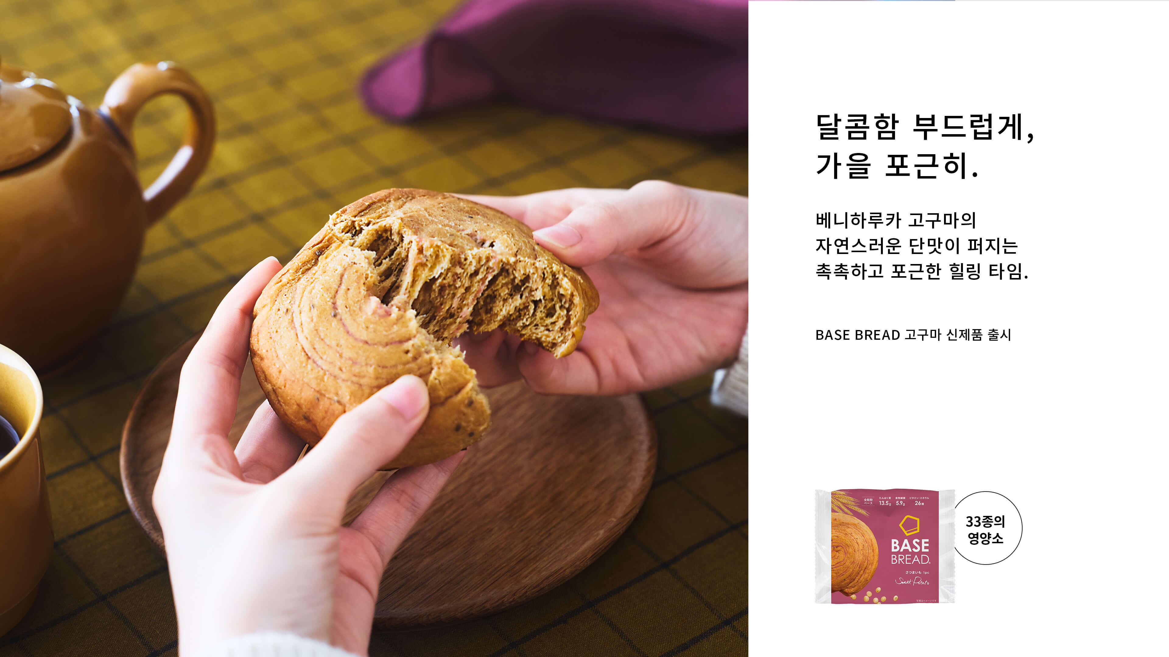 베이스 푸드에는 26종의 비타민과 미네랄, 단백질, 식이섬유 등 몸에 필요한 영양소가 가득 담겨 있습니다.